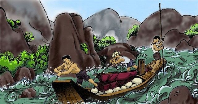 * Hoàn cảnh: Con thuyền tiến đến Phường Rạnh, chuẩn bị đối mặt với những thác nước dữ dội.